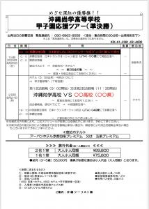 皆様明日の慶応戦に勝った場合の、準決勝観戦ツアーの案内が沖縄ツーリストから来ております。明日の試合後に一般募集を行うようですが、沖尚関係者に先行案内が出ております。詳細は直接沖縄ツーリストさんにお願いします。098-862-1111よろしくお願いします。