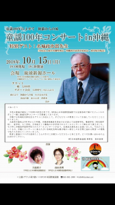 急ですが…来週15日(月)の【童謡100年コンサートin沖縄】に名城政次郎校長先生ご出演されます。チケットは¥2000沖尚事務局にて購入下さい。どうぞ宜しくお願い致します。